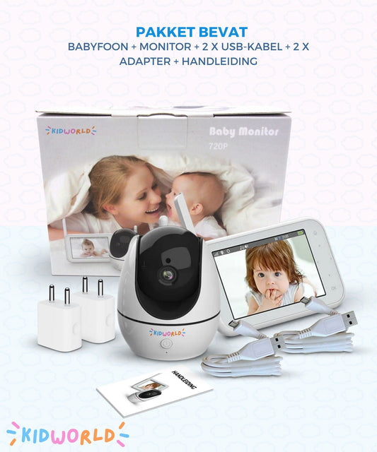 KidWorld Babyfoon Met Camera | IR Night Vision | 355° PTZ Rotatie | Met Baby Monitor